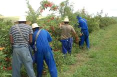 Nove apenados do regime semiaberto do Presídio Estadual de Vacaria trabalham juntos pela primeira vez na colheita da maçã. Os detentos tiveram a oportunidade de trabalho ampliada por um acordo firmado entre a Superintendência dos Serviços Penitenciários (Susepe) e um produtor rural da região. Dos aproximados 30 mil detentos que o Estado abriga hoje, entre os regimes fechado e semiaberto, em média 43,3% estariam contratados.